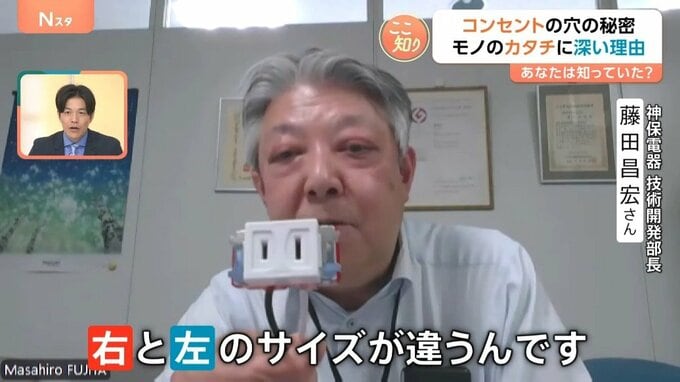 街の皆さんに聞いてもほとんど知りませんでしたが、神保電器 技術開発部長の藤田昌宏さんは「右と左のサイズが違うんです」と教えてくれました。