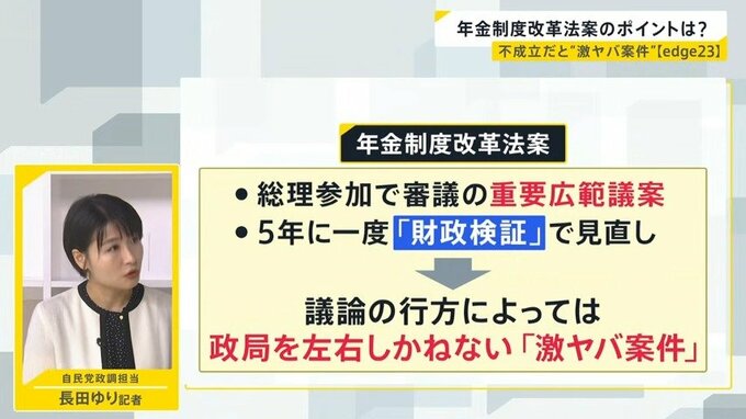 そもそも、「年金制度改革法案」は5年に一度の財政検証を経て見直しが行われる重要な法案である。与野党の合意で最も重要だと位置づけられる「重要広範議案」の一つで、議論の行方によっては政局を左右しかねない「激ヤバ案件」ともいえるものだった。