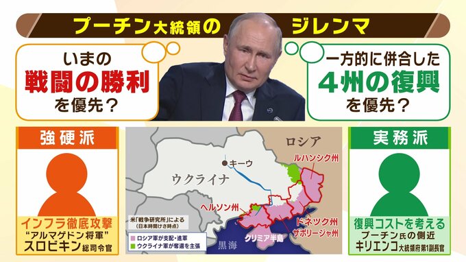プーチン政権内部でも意見対立…「戦闘の勝利」か「4州の復興優先」か