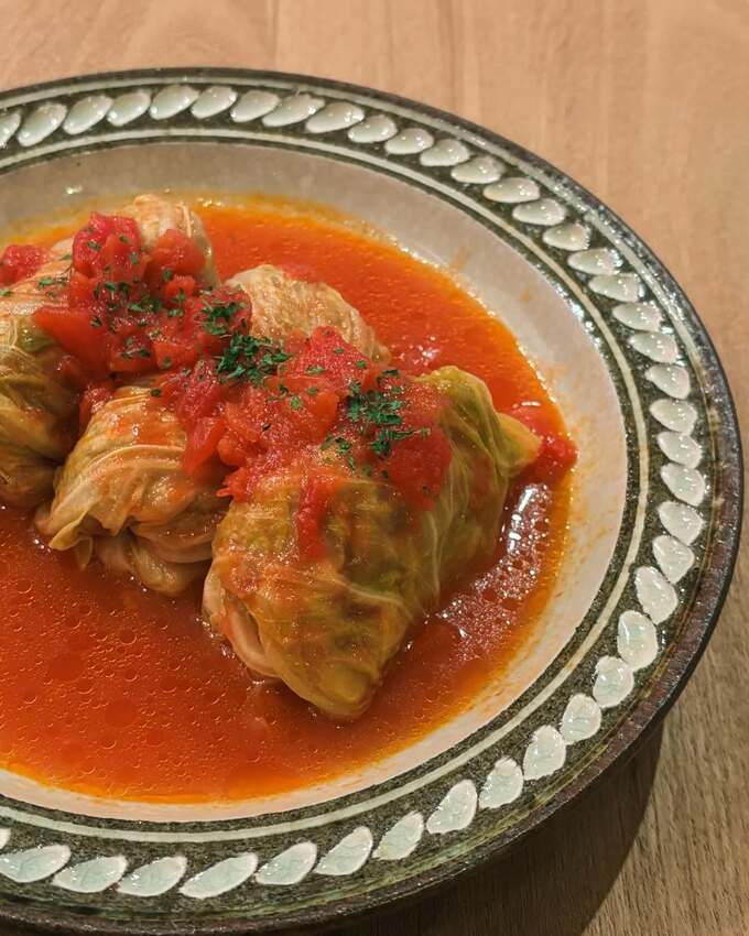 今回「ある日の夜ご飯」と題して披露されたのは、トマトで煮込んだロールキャベツ。じっくり煮込まれたであろう3つのロールキャベツと、そこにかけられたトマトソースが食欲をそそり、湯気や香りが画面越しにも伝わってきそうな一枚です。