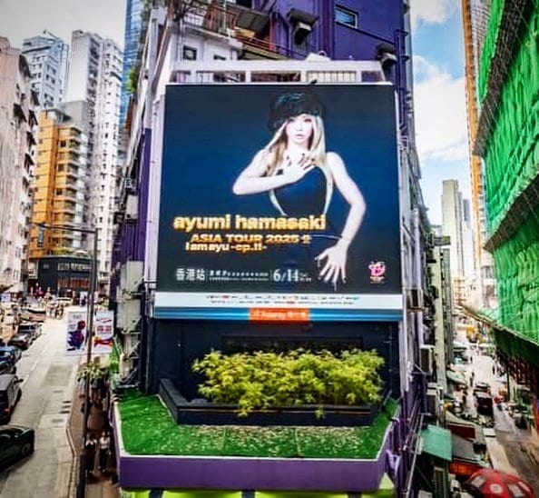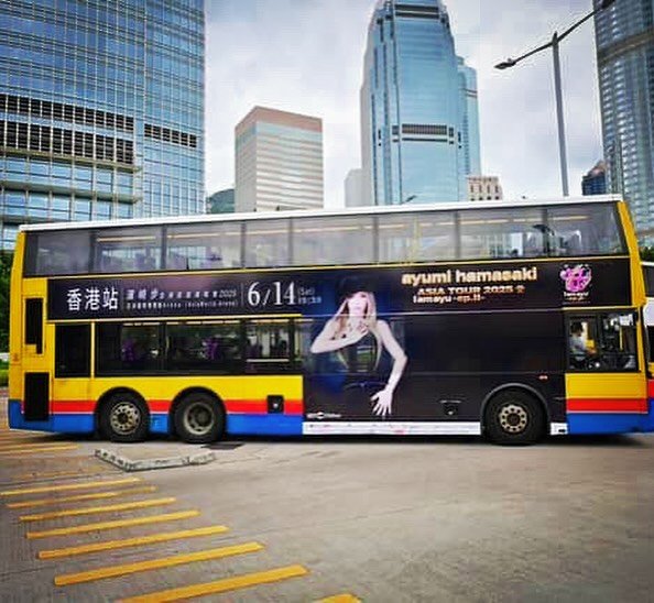 浜崎さんは「香港TAが自分達の力で集まり、香港の街を盛り上げてくれています」とテキスト。2階建てバスの車体や高層ビルの壁面など、街のあらゆる場所に「ayumi hamasaki ASIA TOUR 2025 I am ayu -ep.2-」とタイトルが入った浜崎さんのビジュアルが飾られていて、浜崎さんに香港現地のファン「香港TA」たちから送られているものと思われます。