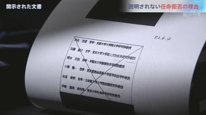安倍政権時代の2020年6月12日。学術会議が総会で、会員候補の推薦を決めた約1か月前、6人の名前の上に大きくバツ印が書かれていた。