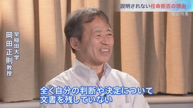 「(任命拒否という)異例のことをやったわけですから、何かやっぱり特別な理由と根拠があって、また、そのための準備もして、でないと、そもそも(任命拒否を)やる理由がないと思う。しかし、そのための文書が不存在だということは、裁判をやっていますけれども、ありえない」
