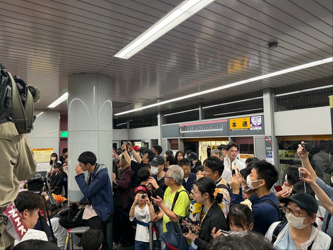 「6000系」のラストランは、午後6時の「本通発広域公園前行」です。出発地点となる広島市中区の「本通駅」には、一目見ようと多くのファンが訪れ、見送りました。