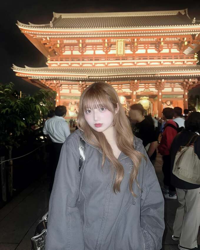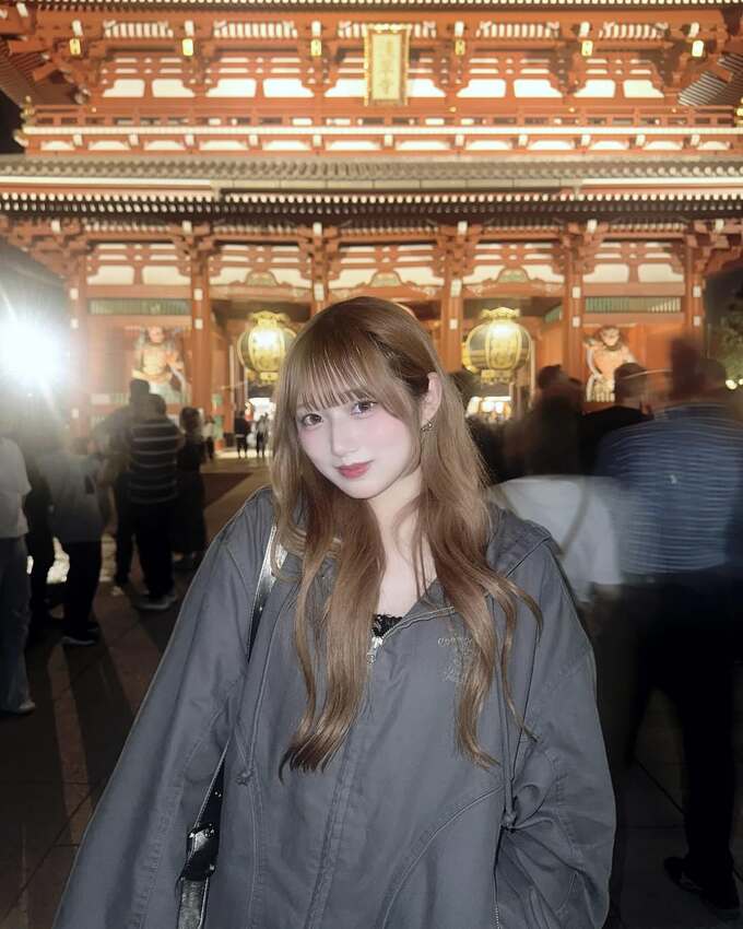 他にも、ライトアップされた宝蔵門(仁王門)を背景に、ポーズをとる姿も見られます。