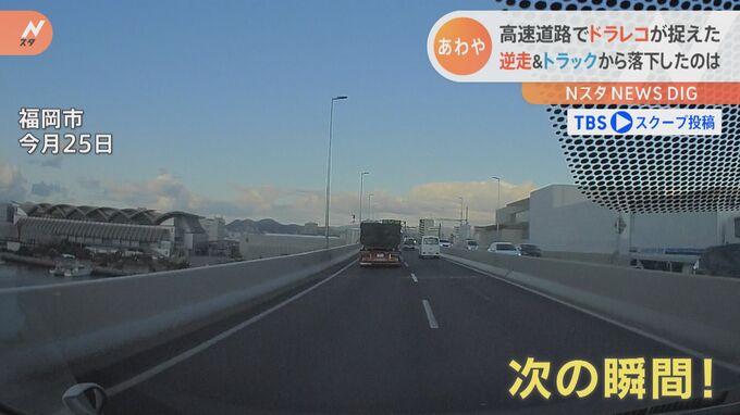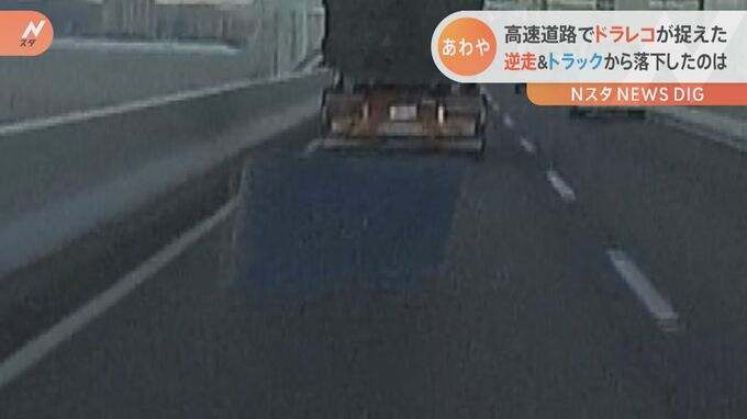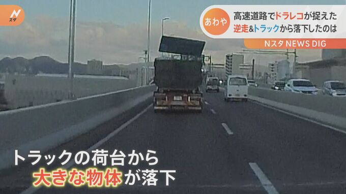 前を走るトラックの荷台から突然、大きな物体が落下。