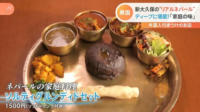 お店のイチオシは、現地で食べるメニューと同じ、ネパールの家庭料理「ソルティグルンディドセット(1500円)」。