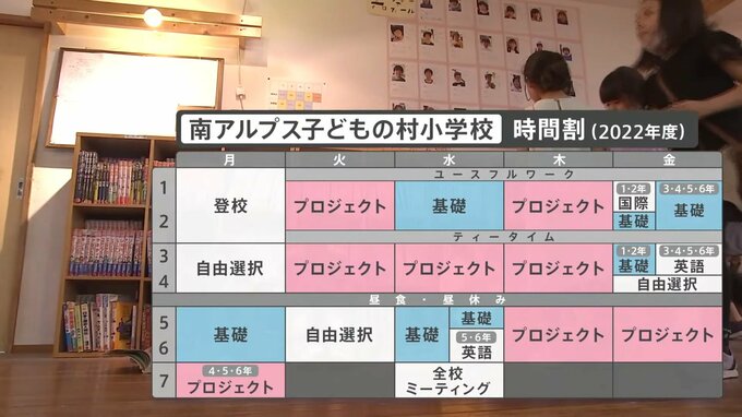 この学校にはテストも宿題も通知表もありません。国語・算数・理科・社会の代わりに、「プロジェクト」と「基礎」と呼ばれる時間があります。