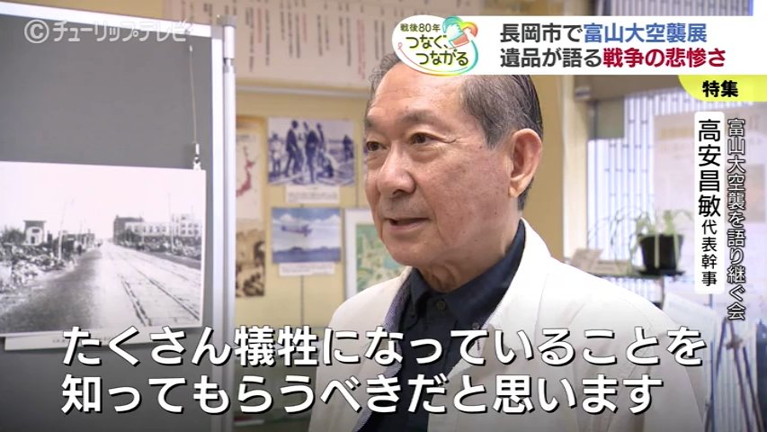 富山大空襲を語り継ぐ会 高安昌敏代表幹事「長岡の市民の方は幼少期から太平洋戦争を含めた戦後のいろんな記録を勉強している。富山大空襲を知っている方が富山市民の中においても少ない。特に若い人にそういう教育がされていない。我々の身内の人たちがたくさん犠牲になっているということを知ってもらうべきだと思います」