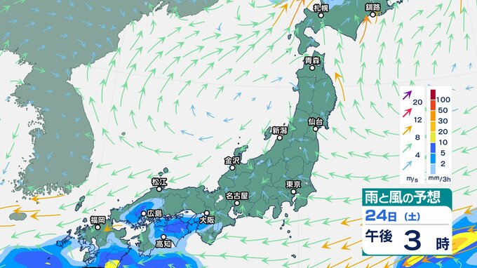 今週末にかけ広範囲で大雨のおそれ 西日本太平洋側は特に警戒を【雨と風のシミュレーション】本州南岸の前線上を低気圧が東に進む見込み チューリップテレビ 2025年5月20日(火) 14:00 国内 天気 24日(土)雨と風のシミュレーション