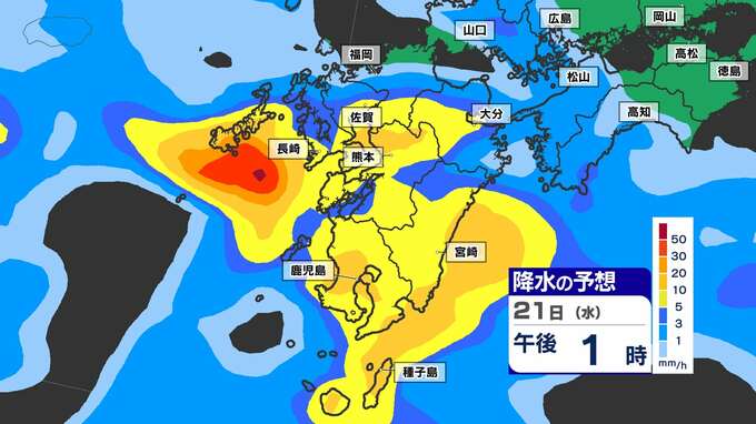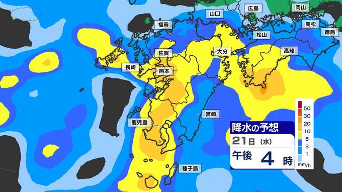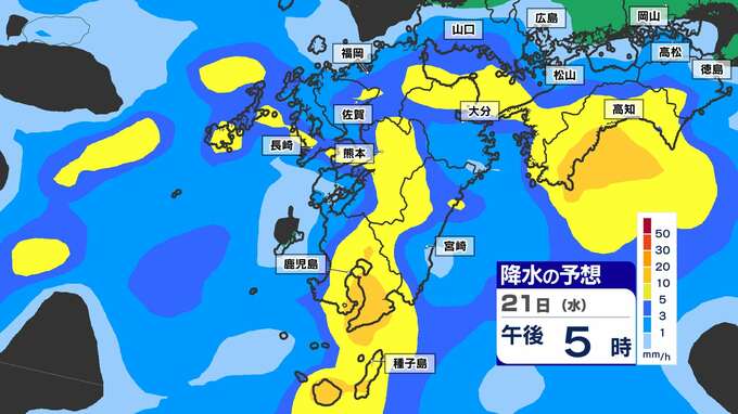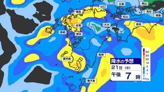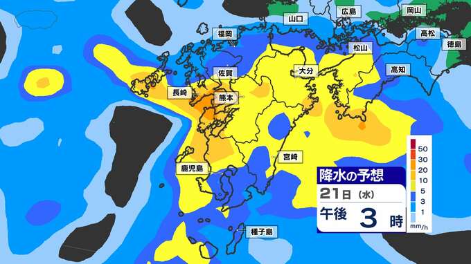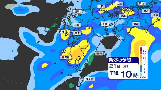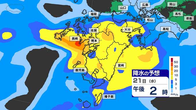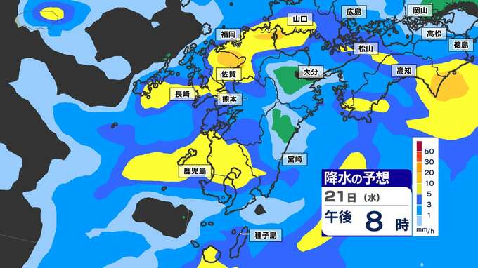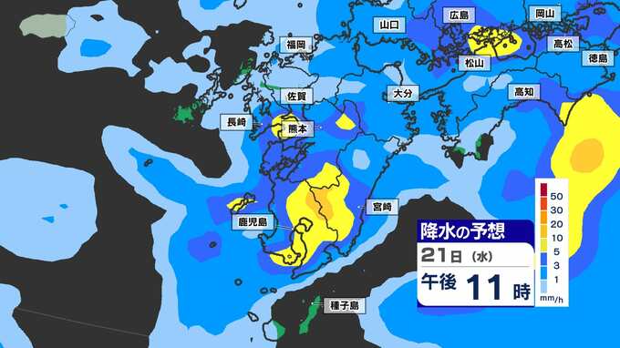 【梅雨前線北上 警報級大雨のおそれ】 鹿児島180ミリ 熊本100ミリ 気象庁「大雨と突風に関する気象情報」発表【雨シミュレーション21日(水)~22日(木)】福岡・佐賀・長崎・大分・熊本・宮崎・鹿児島 南日本放送 2025年5月20日(火) 18:25 国内 天気