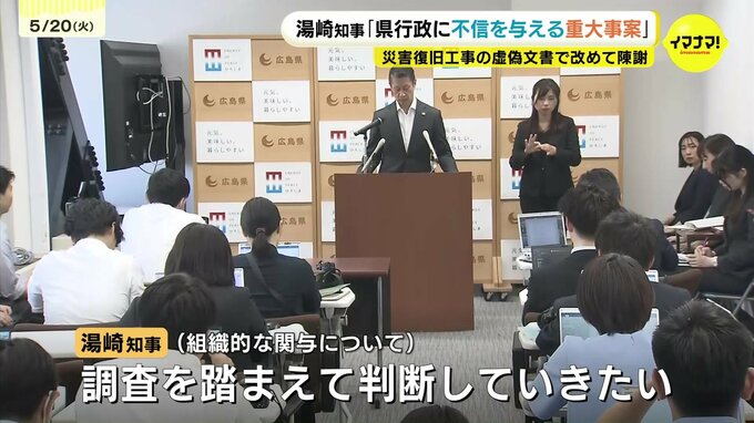 広島県の災害復旧工事をめぐり虚偽の公文書が作成されていた問題について20日、改めて知事が陳謝しました。