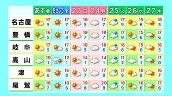 愛知・岐阜を中心に空気が乾燥 火の取り扱いに注意を 土日は各地でお出かけ日和に 来週火曜日は雨予想 愛知・岐阜・三重の天気予報