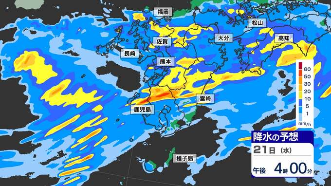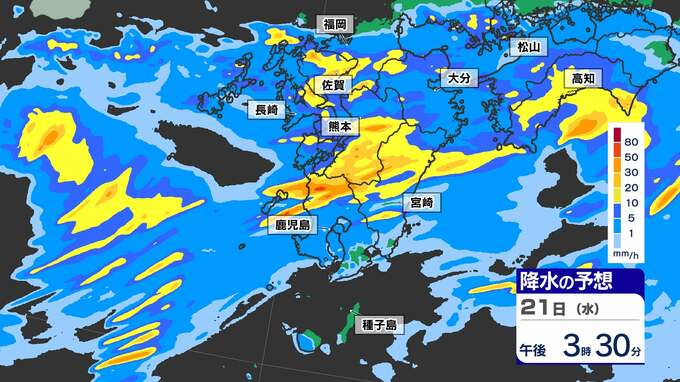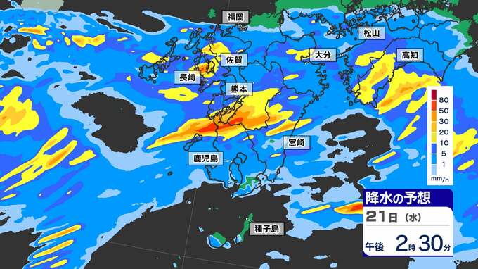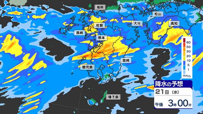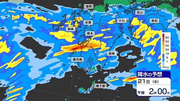 【大雨情報】鹿児島 熊本 宮崎 非常に激しい雨のおそれ 気象庁「大雨と突風に関する気象情報」発表【雨のシミュレーション21日(水)~22日(木)】福岡・佐賀・長崎・大分・熊本・宮崎・鹿児島 南日本放送 2025年5月21日(水) 12:50 国内 天気 雨のシミュレーション21日(水)~22日(木) 熊本県と鹿児島県には、断続的に活発な雨雲が予想されています。また、福岡県をはじめ他の県でも、活発な雨雲が予想されている時間帯があります。雨のシミュレーションは、画像で確認できます。