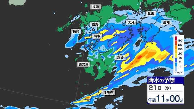 【大雨情報】鹿児島 熊本 宮崎 非常に激しい雨のおそれ 気象庁「大雨と突風に関する気象情報」発表【雨のシミュレーション21日(水)~22日(木)】福岡・佐賀・長崎・大分・熊本・宮崎・鹿児島 南日本放送 2025年5月21日(水) 12:50 国内 天気