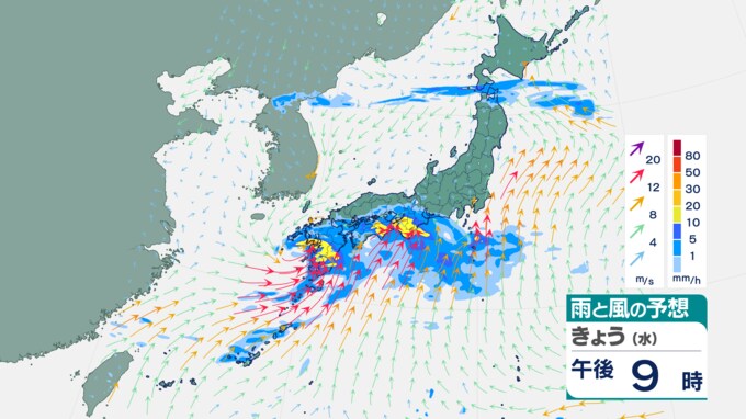 【雨・風のレーダー予想③】(22日午前1時~22日午前6時)