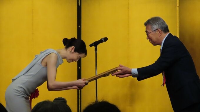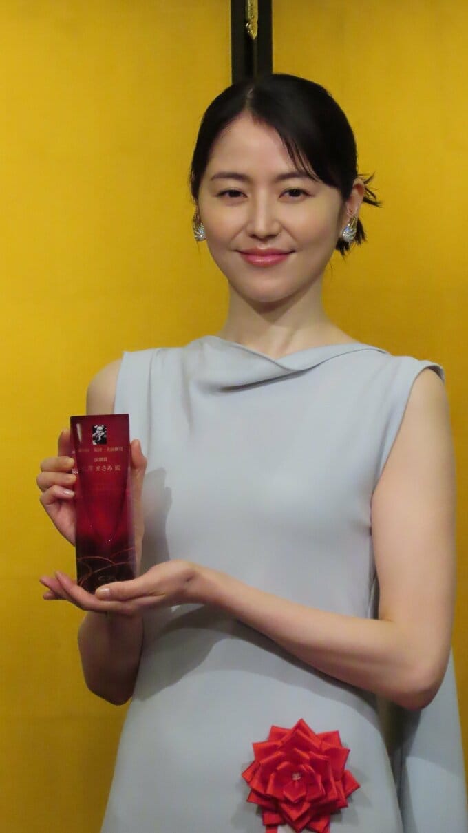 21日、俳優の長澤まさみさんが「第50回菊田一夫演劇賞」の授賞式に登場しました。
