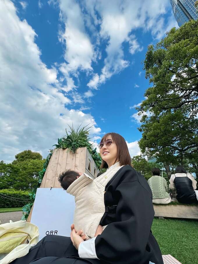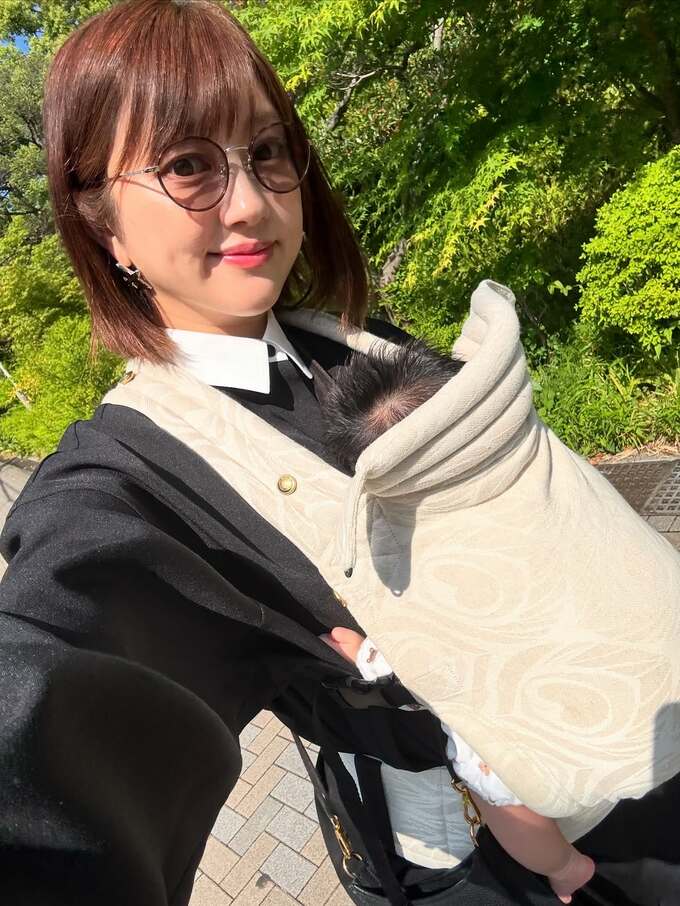 菊地さんは、「ベビーカーあるのに抱っこ紐なんですが?笑」と一言添えて、写真を1枚投稿しました。