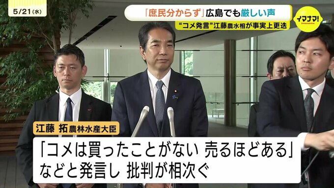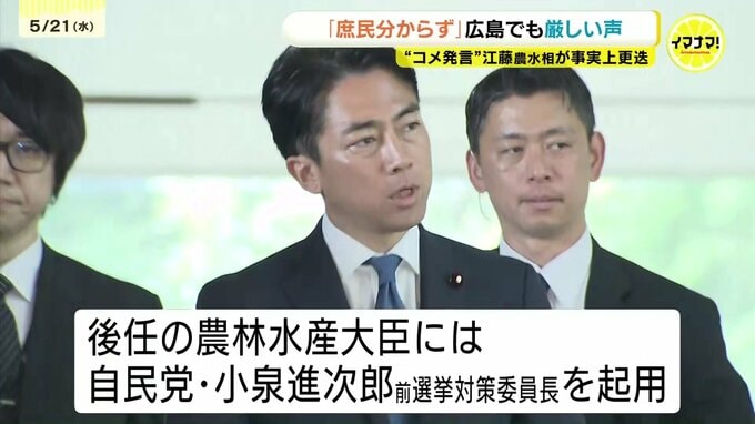 江藤農林水産大臣が「コメは買ったことがない」などと発言し、事実上更迭された問題についてです。広島の消費者からも「庶民のことを分かっていない」といった厳しい声が聞かれました。