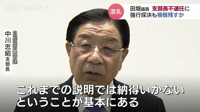 82人による投票で賛成58、反対20、白票4となり、田畑議員を選挙区支部長に選任しないことを決めました。