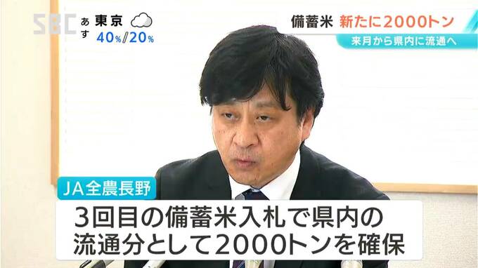 JA全農長野は県内向けの備蓄米についてこれまでの流通量のおよそ3倍にあたる2000トンを新たに確保したことを明らかにしました。