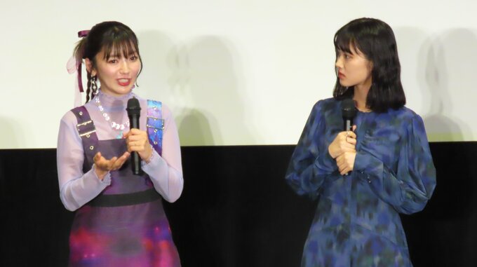 原菜乃華さん、なえなのさん、そして霊感体質を持つ松嶋初音さんと“霊がよく視える”で話題のお笑い芸人・シークエンスはやともさんらが、映画『見える子ちゃん』公開直前舞台挨拶に登壇しました。