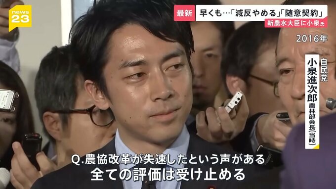 2015年、自民党の農林部会長に就任し、全国の農家を視察した小泉氏。農協の非効率な組織の改革などを訴えましたが、猛反発を受けた経緯があります。