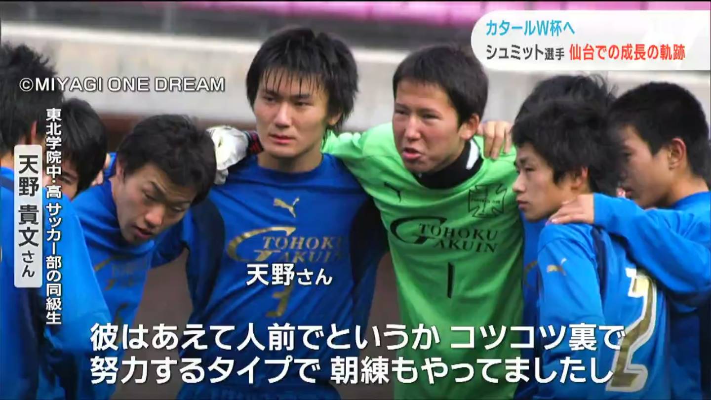 シュミット選手は、小学校2年生の時に、テレビで見たJリーグの試合をきっかけにサッカーを始め、中学・高校は強豪・東北学院に進学しました。