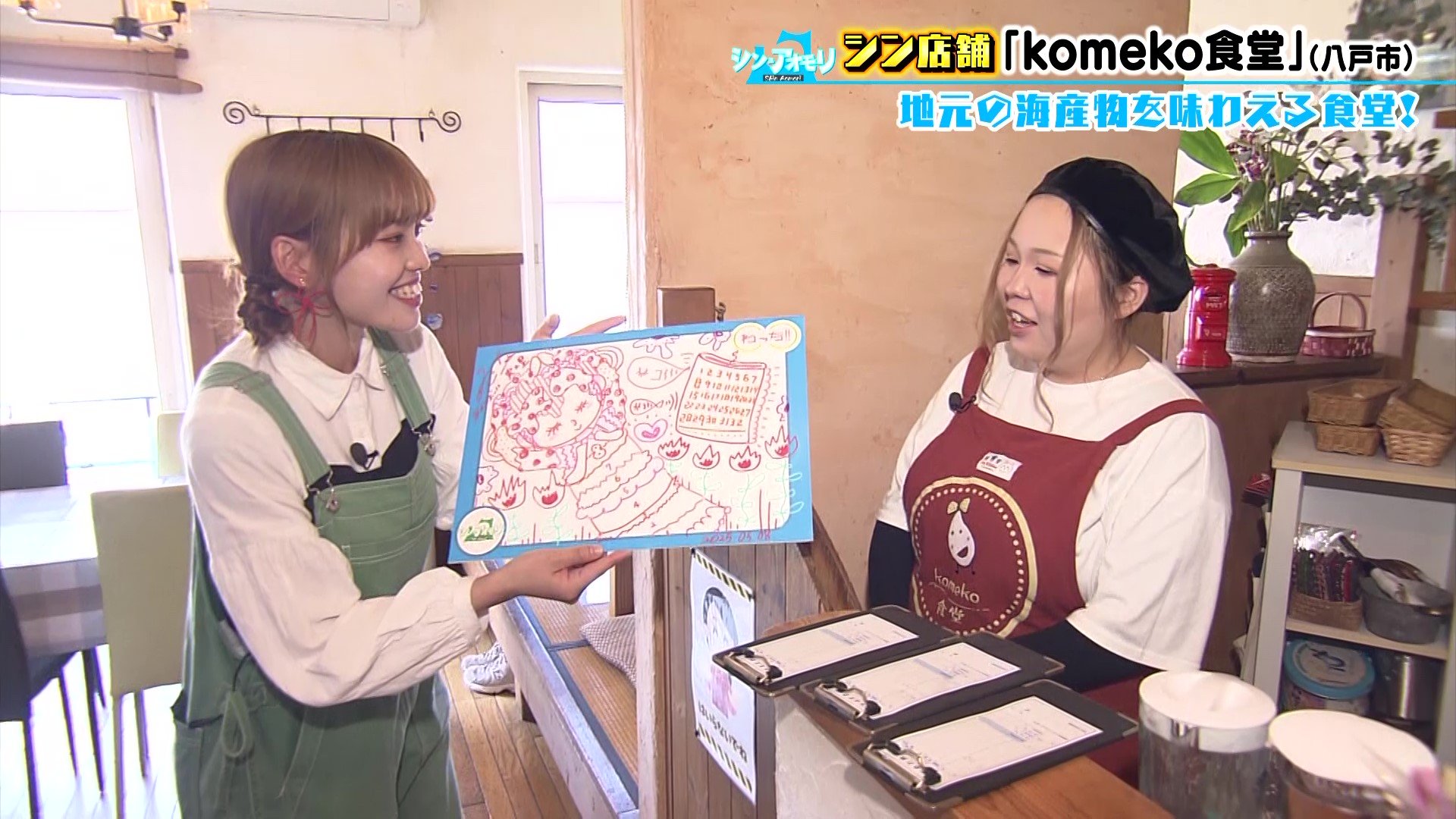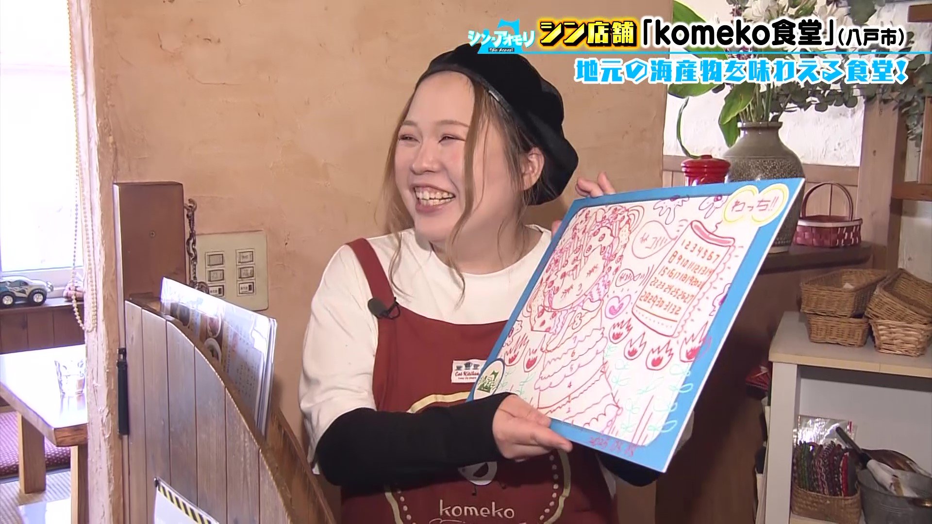 「これは、ミルフィーユ丼を宮崎さんが着ているみたいな感じで描きました。絵の中にカレンダーがあるんですけど、このミルフィーユ丼を食べたら普段の日常が何か特別な日になりそうっていうことで、エブリデイがハッピーみたいな感じです。今後、どんなお店にしていきたいですか?」
