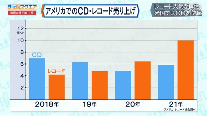 ここ数年、世界的にアナログレコードの売れ行きが伸びている。アメリカでは、2020年にレコードの売り上げがCDを逆転。去年の売り上げは10億ドル、約1500億円とCDの売り上げの約1.7倍になった。