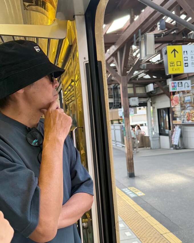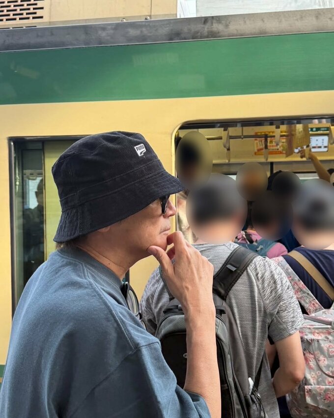 続けて、「風流でとても良かったけど人が多すぎる!」と深々と帽子をかぶって江ノ電に乗車する様子や電車のドア付近に立ち駅を眺める姿を公開しました。