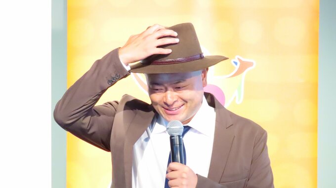 あばれる君は、ハットを被って登場すると、インディ・ジョーンズ気分なのか、“あばティ・ジョーンズです”と、陽気に挨拶。困惑する会場の空気を察し、MCに “続けてください” と早めに進行を促して会場を笑わせました。