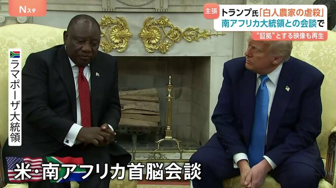 アメリカのトランプ大統領が南アフリカの大統領と会談。「白人農家の虐殺が起きている」と主張し、証拠だとする映像を流す異例の展開となりました。21日行われた、トランプ大統領と南アフリカのラマポーザ大統領の…