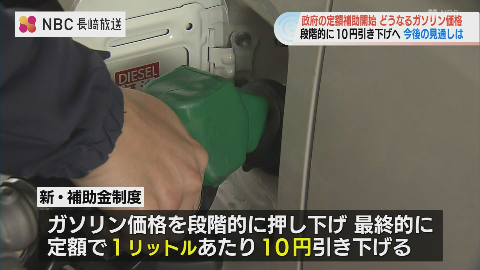 政府による新たなガソリン補助金が22日から始まりました。最終的に1リットルあたり10円引き下げられる予定のガソリン価格、長崎市内のガソリンスタンドで今後の見通しなどを聞きました。