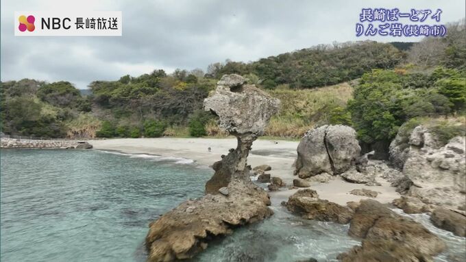 その姿はまるで“かじられたりんご” 長崎市かきどまり白浜海岸の奇岩「りんご岩」【長崎ばーどアイ】 To view this video please enable JavaScript, and consider upgrading to a web browser that supports HTML5 video 長崎放送 2025年5月22日(木) 19:26 国内 長崎市のかきどまり白浜海岸にある不思議な岩「りんご岩」 かじられたりんごのような形から「りんご岩」と呼ばれる。 正式名称は「傘岩」高さ15メートル、見ていると少し不安になる岩。
