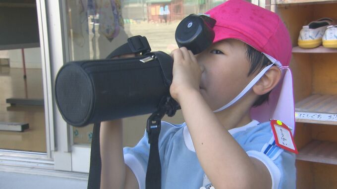 161人の園児が通う大分市のえのくま幼稚園。登園後には園庭で遊ぶ時間を設けています。暑さが増すこの時期、園では水分補給の時間を作り、子どもたちの様子をチェックしています。