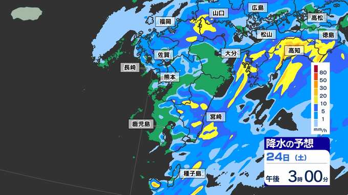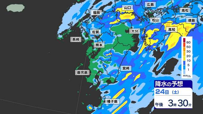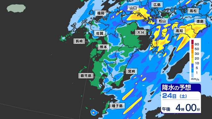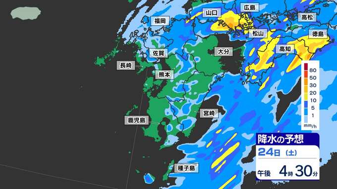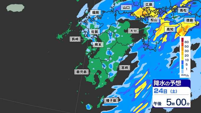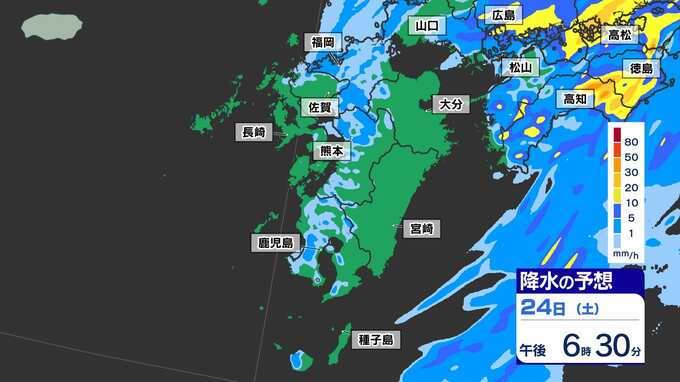 【大雨に関する気象情報】福岡70ミリ 熊本100ミリ 鹿児島120ミリ 警報級大雨おそれ【雨シミュレーション24日(土)~25日(日)/ 警戒が必要な時間帯は】気象台発表詳しく 南日本放送 2025年5月24日(土) 17:30 国内 天気 雨のシミュレーション24日(土)~25日(日) 雨は弱っていく傾向ですが、夕方までは局地的な〈非常に激しい雨〉〈激しい雨〉に、今夜遅くまでは、落雷や竜巻などの激しい突風に注意してください。雨のシミュレーションは、画像で確認できます。