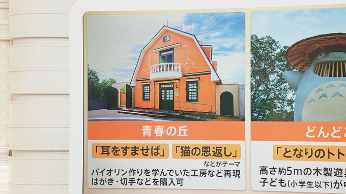 「耳をすませば」「猫の恩返し」などがテーマになっています。「耳をすませば」の舞台のひとつ、地球屋をモチーフにした建物や主人公がバイオリン作りを学んでいた工房などが再現され、オリジナルのはがきや切手などを購入することができるそうです。