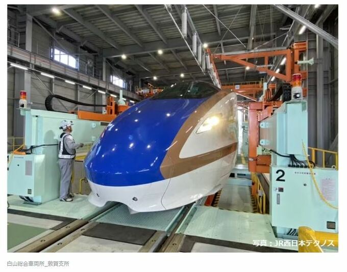 JR西日本金沢支社によりますと、外れていたのは、ブレーキライニングと呼ばれるブレーキ装置の一部で、21日午後10時ごろ、福井県敦賀市にある北陸新幹線白山総合車両所敦賀支所で行われていた点検で、1号車の先頭側の台車にブレーキライニング1枚が装着されていないことが分かりました。