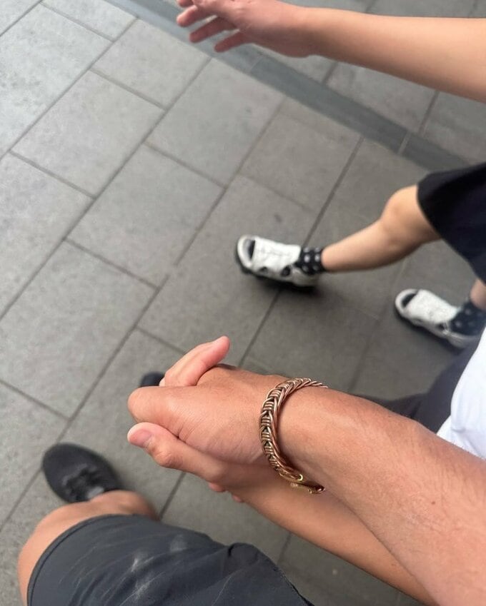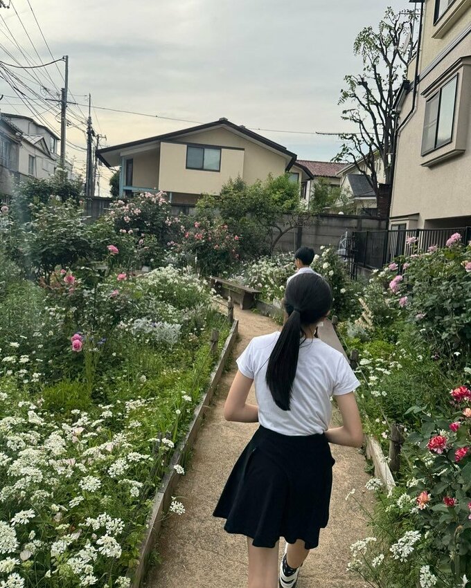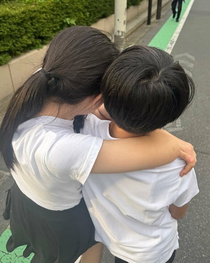 そして麗禾さんが勸玄さんを包み込むようにして一緒に歩く写真や、住宅街の中の緑道を歩く写真も合わせて投稿。團十郎さんは英語で “Let’s go, together the three of us walking, to dinner,” (いこう、3人で歩いて、晩御飯へ、)とテキスト。