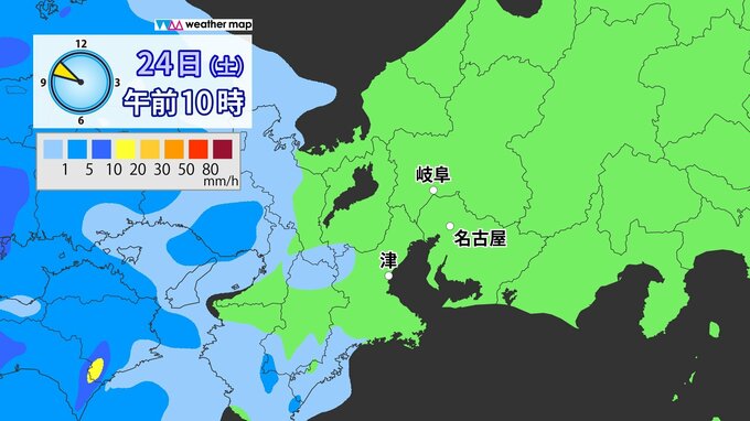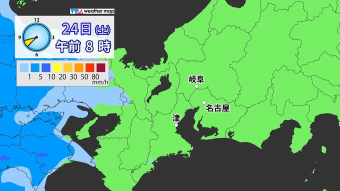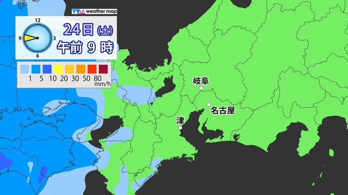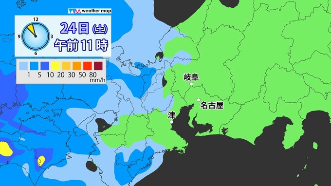 【画像】愛知・岐阜・三重はいつ雨が降る?24日(土)正午~午後6時までの雨シミュレーション
