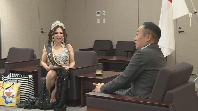 ミセスコンテストの世界大会に出場する山口県宇部市の女性が23日、市長に意気込みを語りました。