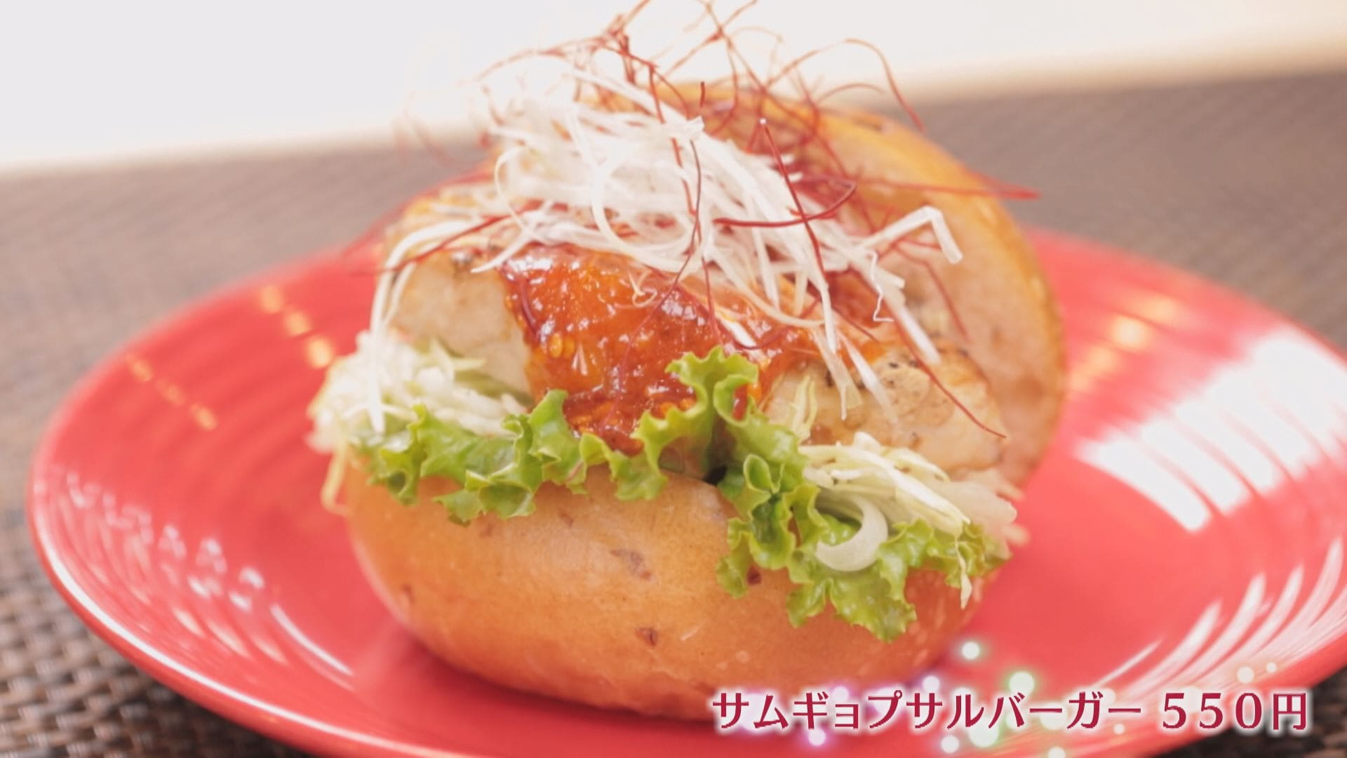こんがり焼いた厚い豚肉とたっぷり野菜とにパンにはさみ、ニンニクとみその手作りコチュジャンソースをかけた、食べ応えある「サムギョプサルバーガー」(550円)。鶏肉とパプリカなど5種類の野菜をナンプラーやスイートチリソースで味付けた新作の「ガパオパン」(350円)。このお店は手作り「総菜パン」の人気店なんです。