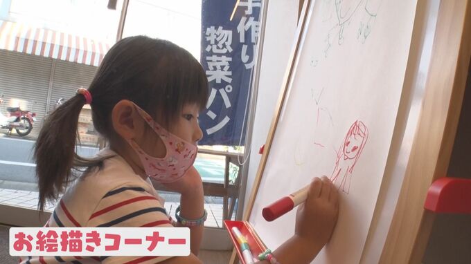 お母さんが、子を持つ親のために始めた総菜パン店。ゆっくり選んでもらえるようにと、子どものお絵描きコーナーも。