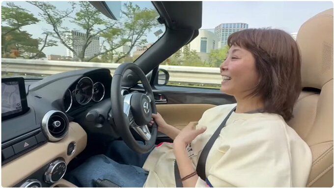 最初は “ハードトップタイプの屋根は(開閉が)無理だと思ってた” と語った芳本さんですが、実際に電動で開閉するルーフの機能を体験すると “やっぱりロードスターでこの開放感がいいわけだから” と納得の表情。窓を開けて風を感じることで “ちょっと開放的になるじゃん” と語りつつ、屋根を開けていても窓を閉めれば “ちゃんと室内な感じがしてる” “話す声も聞こえる” と、その使い分けの楽しさも実感したようです。