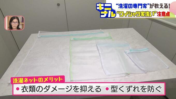 洗濯ネットを上手に使うことをおすすめします。洗濯による衣類のダメージを抑え、型崩れを防ぐことができます。