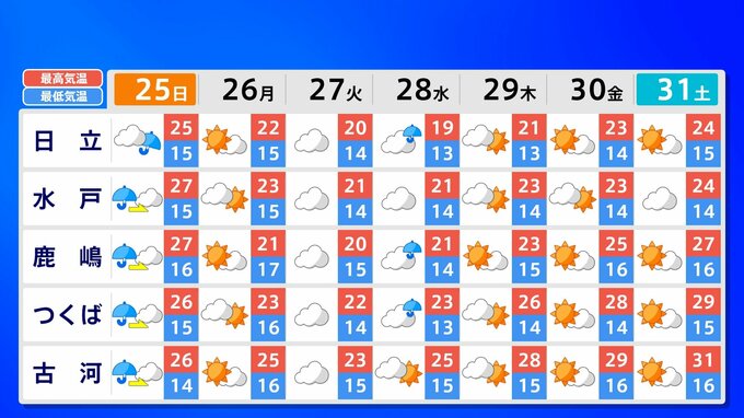 【大雨に関する気象情報】警報級大雨のおそれ 関東地方の梅雨入りは?【雨のシミュレーション24日(土)25日(日)】気象庁発表詳しく 東京 横浜 埼玉 千葉 群馬 栃木 茨城 南日本放送 2025年5月24日(土) 19:00 国内 天気 関東地方各都市の週間予報 25日(日)は雨ですが、その後梅雨前線が南下するため、晴れる日が多くなって雨の日が続かないため、5月中の梅雨入りはないでしょう。関東地方各地の週間予報は、画像で掲載しています。