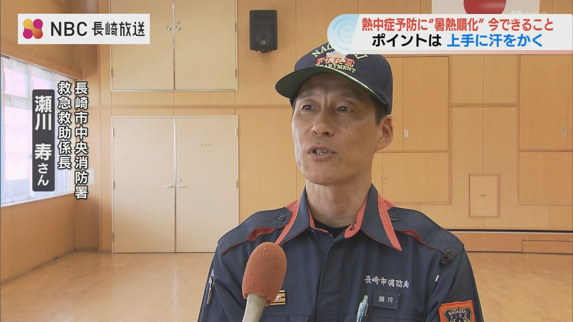 長崎市中央消防署・瀬川寿救急救助係長「火災現場なので隊員が熱中症に陥れば、現場活動に支障が出ます。本格的な夏を迎える前に熱中症にならないような体づくりを目指すように取り組んでいます」