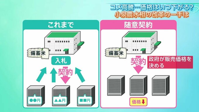 その「入札」をやめ、随意契約にするという決断。政府が販売価格を決めることで、コメの価格を下げようというのです。