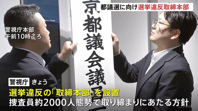 来月22日に投開票が行われる東京都議会議員選挙を前に、警視庁が選挙違反の「取締本部」を設置しました。都議選の告示まであと18日となったきょう、警視庁は選挙違反の「取締本部」を設置し、捜査員およそ2000人態…